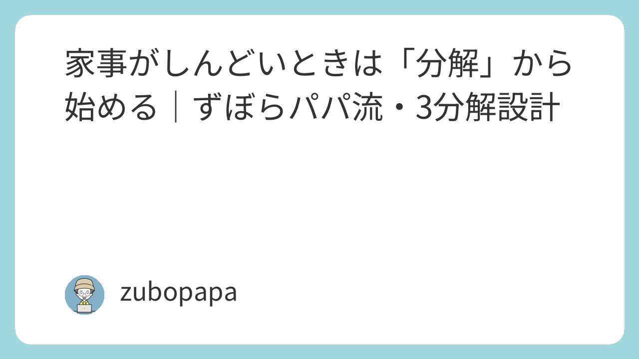 家事がしんどいときは「分解」から始める|ずぼらパパ流・3分解設計