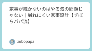 家事が続かないのはやる気の問題ではありません。ずぼらパパ流「家事安定化モデル」で、家事を分解する・減らす・頼るの順番で設計し、崩れにくい状態をつくる方法を解説します。